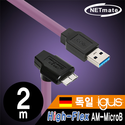 • 강원전자 넷메이트 USB3.0 High-Flex AM-MicroB 케이블 2m (독일 igus 선재/꺾임) CBL-HFPD3igMB-2mDA
