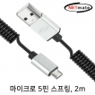 • USB2.0, 480Mbps, 스프링, 코일, 돼지꼬리, AM-MicroB, 마이크로5핀, 충전, 케이블