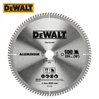 • Dewalt, 원형톱날, 팁쏘, 톱날, 알루미늄용, 하드우드용, 250mm, 10인치, 100T, 내경 25.4mm