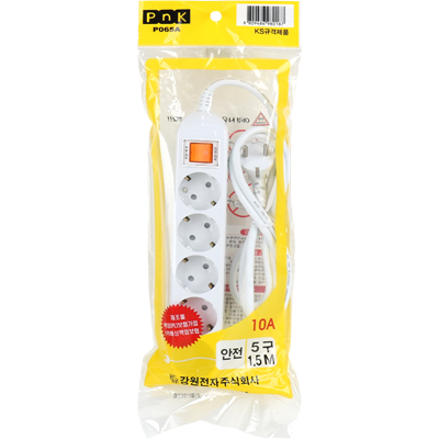 • 강원전자 PnK 안전 멀티탭 5구 접지 1.5m (10A) P065A