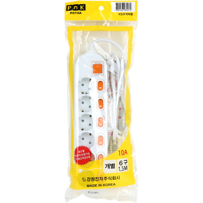 • 강원전자 PnK 안전 멀티탭 6구 개별 1.5m (10A) P074A